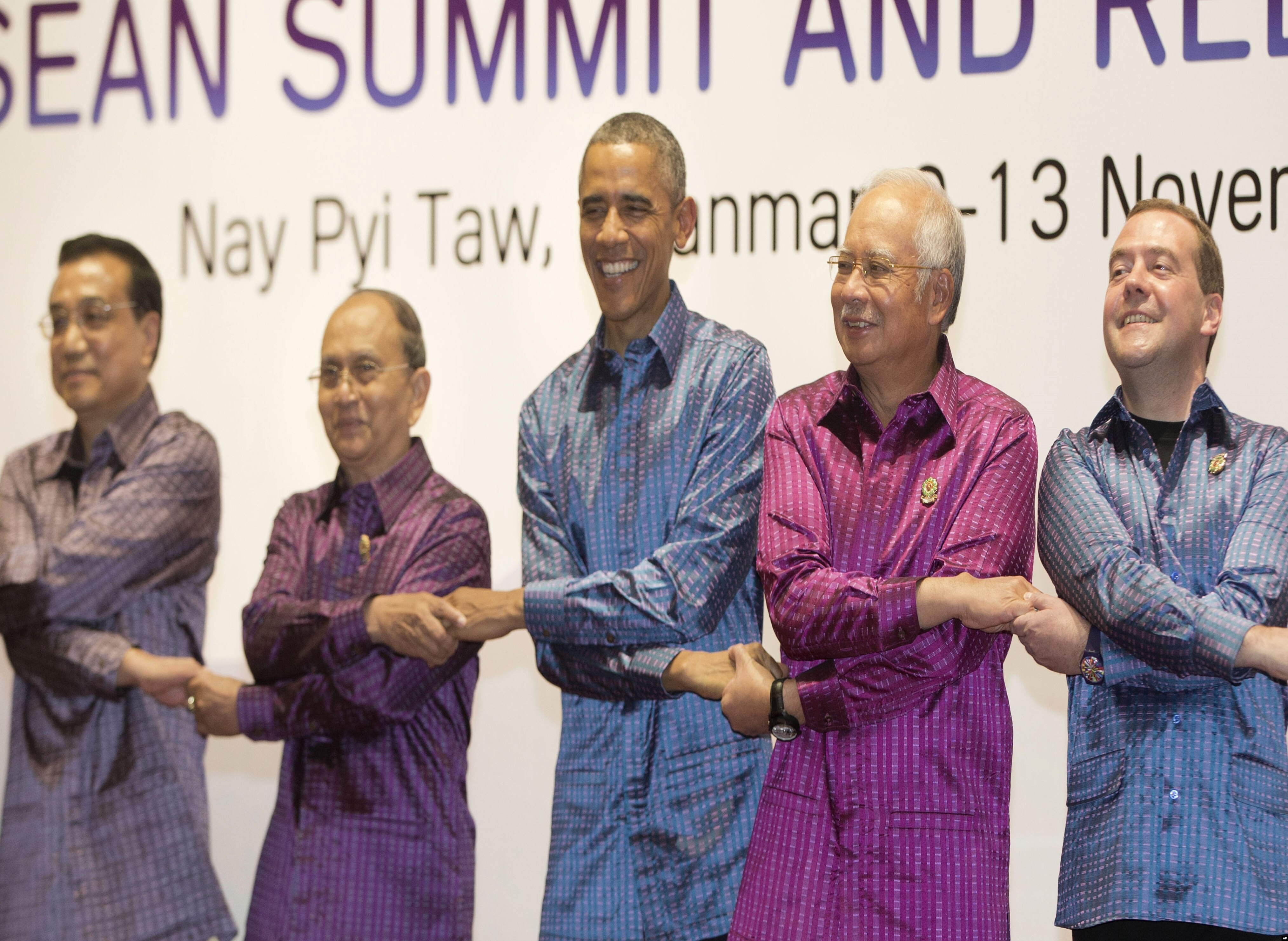 အာဆီယံေခါင္းေဆာင္မ်ား ျမန္မာႏိုင္ငံ၊ ၿမိဳ႕ေတာ္ ေနျပည္ေတာ္မွာ ေတြ႔ဆံုစဥ္။ (ႏိုဝင္ဘာ ၁၂၊ ၂၀၁၄)