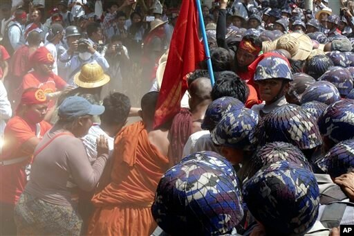 ဆႏၵျပသူမ်ားက ေျမာက္ဦးရဲစခန္းကို ၀ိုင္းအံုလာရာမွ ေသနတ္ပစ္ေဖါက္ျပီး လူစုခြဲေနရဟုဆ