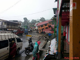 ဟားခါးၿမိဳ႕ေျမၿပိဳမႈေၾကာင့္ ပ်က္စီးေနတဲ့အိမ္မ်ားကို ေတြ႕ရစဥ္။ Photo: Chin World |